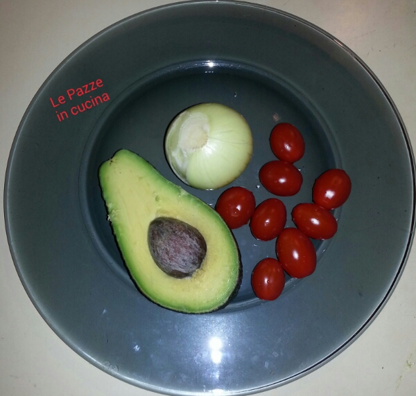 Pulite l’avocado e tagliatelo a pezzi grossi. Fate lo stesso con la cipolla e lavate i pomodorini.