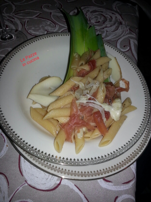 Tip: utilizzate poco sale, sia nei porri che nell’acqua della pasta, perché la scamorza e il crudo sono già molto saporiti.