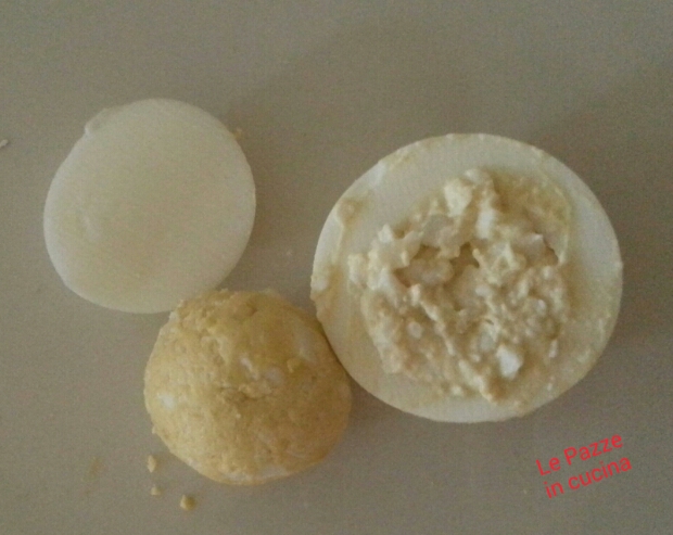 Mettete da parte anche un tuorlo e mezzo sodo.