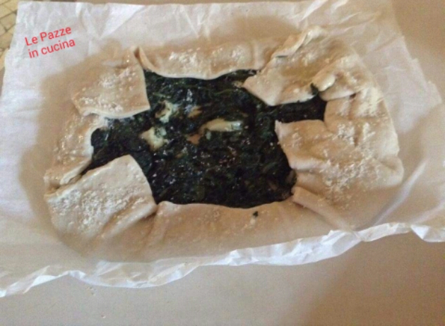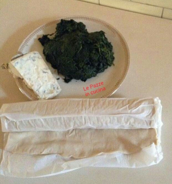 Scongelate gli spinaci e fateli saltare in padella con una lacrima d’olio. Una volta ben arrostiti e asciugati, fateli raffreddare mentre stendete la pasta pizza. Aggiungete il gorgonzola a pezzetti negli spinaci e mescolate. Versate il composto sulla pasta e richiudete i bordi. Ungeteli con un filo d’olio (o latte) e spolverate con il parmigiano grattugiato.