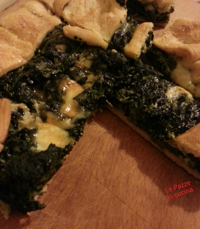Partiamo dal fatto che abbiamo una passione sfrenata per il gorgonzola…. nei gnocchi, sulla pizza, nelle piadine, su una fetta di pane, manca solo nel caffè alla mattina! Ieri sera gli ingredienti scarseggiavano. In frigorifero gorgonzola e pasta della pizza. In freezer spinaci e un hamburger. Scartiamo la carne e buttiamo insieme gli altri ingredienti. O una pizza o una torta salata…. vince a mani basse la seconda. Ecco cosa abbiamo fatto!
