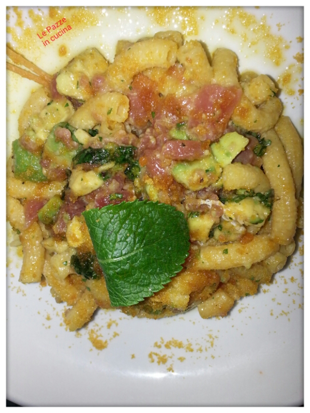 Abbiamo rifatto una pasta provata in un ristorante… se vi piacciono tonno, avocado, menta e bottarga, è il vostro piatto! Ecco cosa serve per due persone: