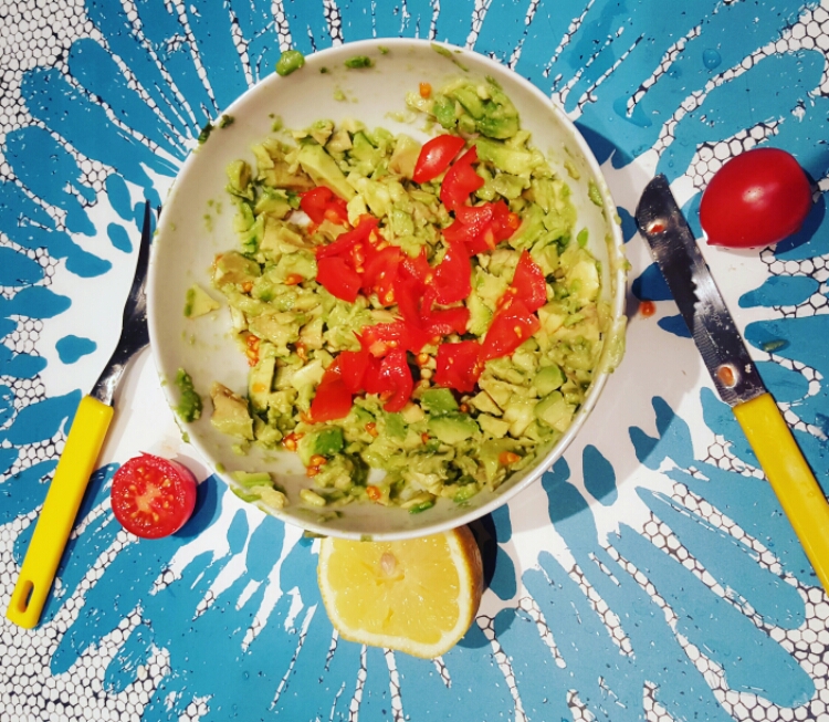 Pulite l’avocado, sminuzzatelo in una ciotola a coltello e spruzzateci sopra il succo di limone per evitare che si ossidi (diventando neraccio).