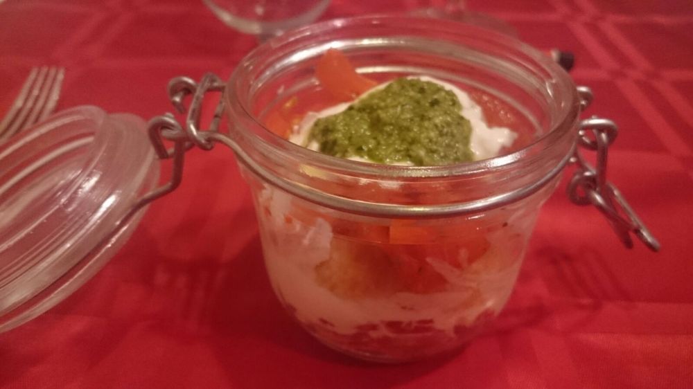 Si tratta di una rivisitazione della classica bruschetta, servita in vasetto per essere davvero chic!