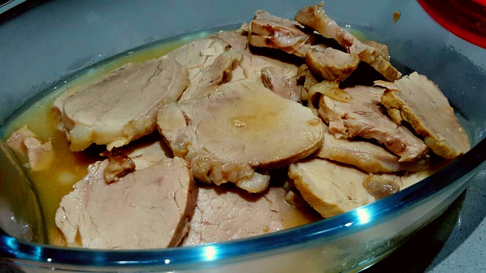 Una volta freddo, tagliate l’arrosto e fate ridurre la salsa, aiutandovi con un po’ di maizena messa a freddo per far addensare meglio la salsa.