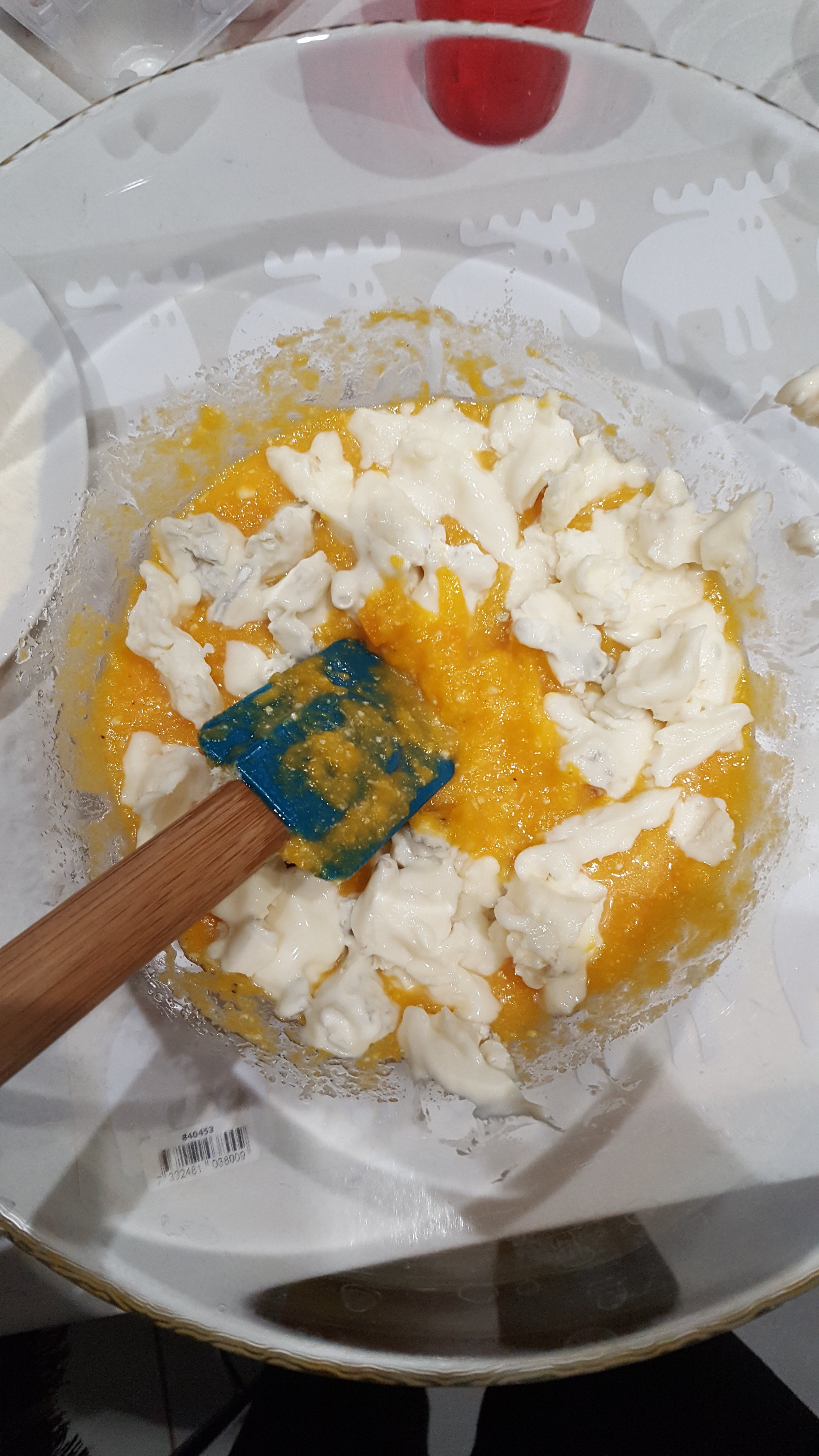 Pulite la zucca e fatela cuocere a vapore (io ho usato la pentola a pressione). Fatela poi saltare in padella perché si asciughi, in modo tale da evitare che rilasci acqua nell’impasto. Una volta pronta, mettetela in una grande ciotola e aggiungete gli ingredienti liqiidi: uova, olio e latte e mescolate. Aggiungete poi parmigiano, gorgonzola, sale e farina, mescolate, e per ultimo il lievito.