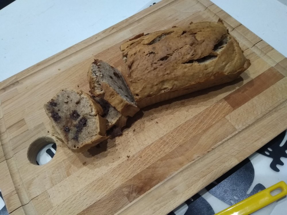 Aggiungete il cioccolato a scaglie che avrete precedentemente infarinato, in modo tale che non si depositi sul fondo, versate il composto in una teglia da plumcake foderata con carta forno e infornate a 180° per 50/60 minuti.