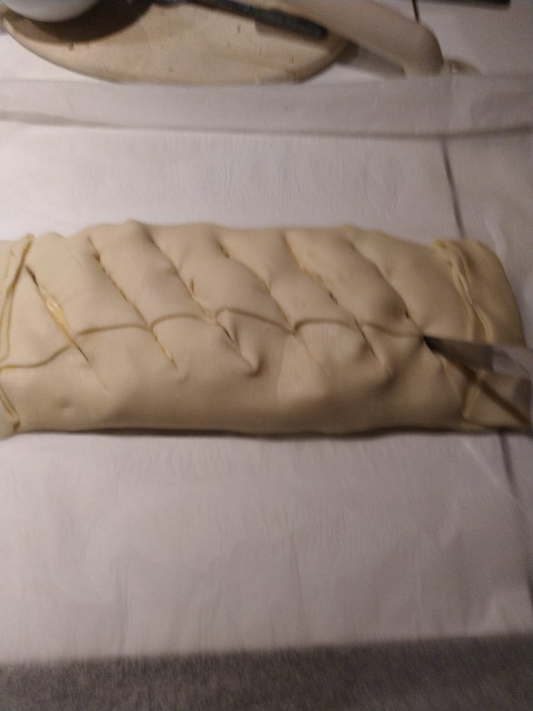 Spennellate i bordi con il rosso dell’uovo appena sbattuto e chiudete, sovrapponendoli. Intagliate la superficie per consentire la fuoriuscita del vapore e infornate per 30 minuti a 190°.