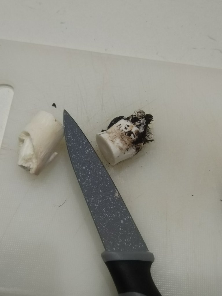 Eliminate poi la parte finale del gambo ricoperta di terra e anche da qui la pellicola/primo strato.