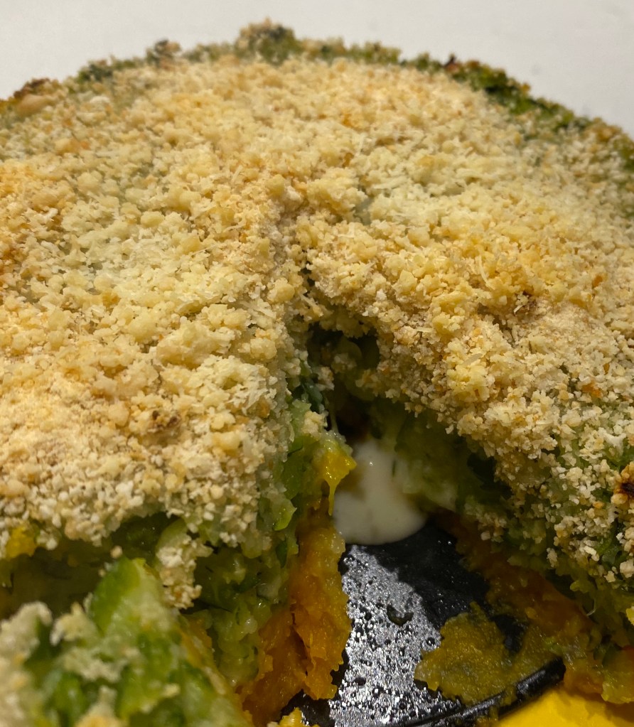 È stato un esperimento, riuscito! Questo sformato con zucca, zucchine e cuore filante di crescenza è davvero eccezionale! Ci sarebbe stato anche il gorgonzola, ma non ce l’avevo. Serve solo un po’ di tempo per prepararlo, ma è super facile. Io ho usato una teglia a cerniera (da 10 cm), comoda per staccare i bordi, ma poco per togliere lo sformato rovente dalla base. Si può usare tranquillamente una teglia usa e getta o una vera, io non avevo abbastanza quantità per un formato più grande 👎🏻.