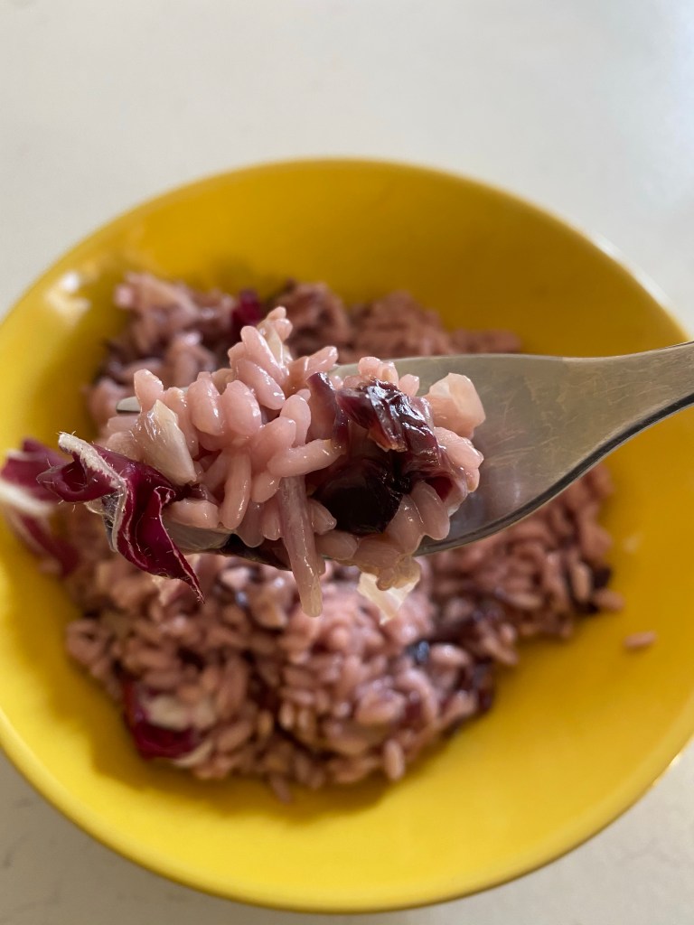 Una volta raggiunta la cottura desiderata, spegnete il fuoco e mantecate con una noce di burro. Io l’ho lasciato “liscio” per gustarmi il sapore del radicchio, ma se piace potete aggiungere parmigiano o… il gorgonzola! L’abbinamento è perfetto 🤩