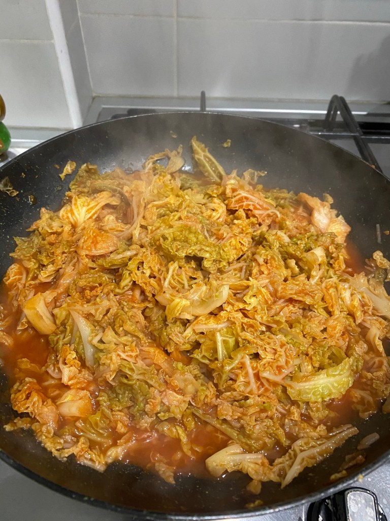 Di stagione, la verza è bella e buona! E poi si prepara in poco tempo. Io l’ho stufata con un goccio di passata di pomodoro, ma si può fare anche in bianco. Cosa serve: