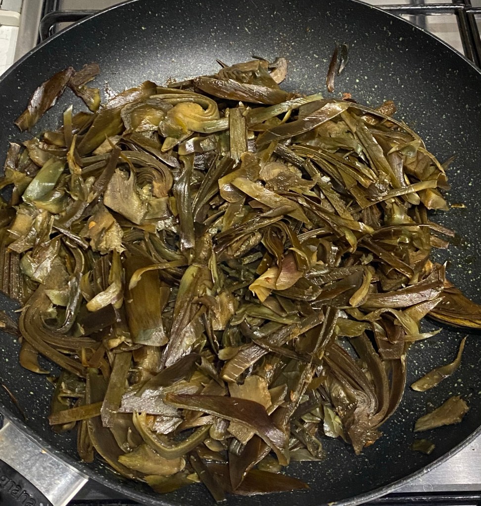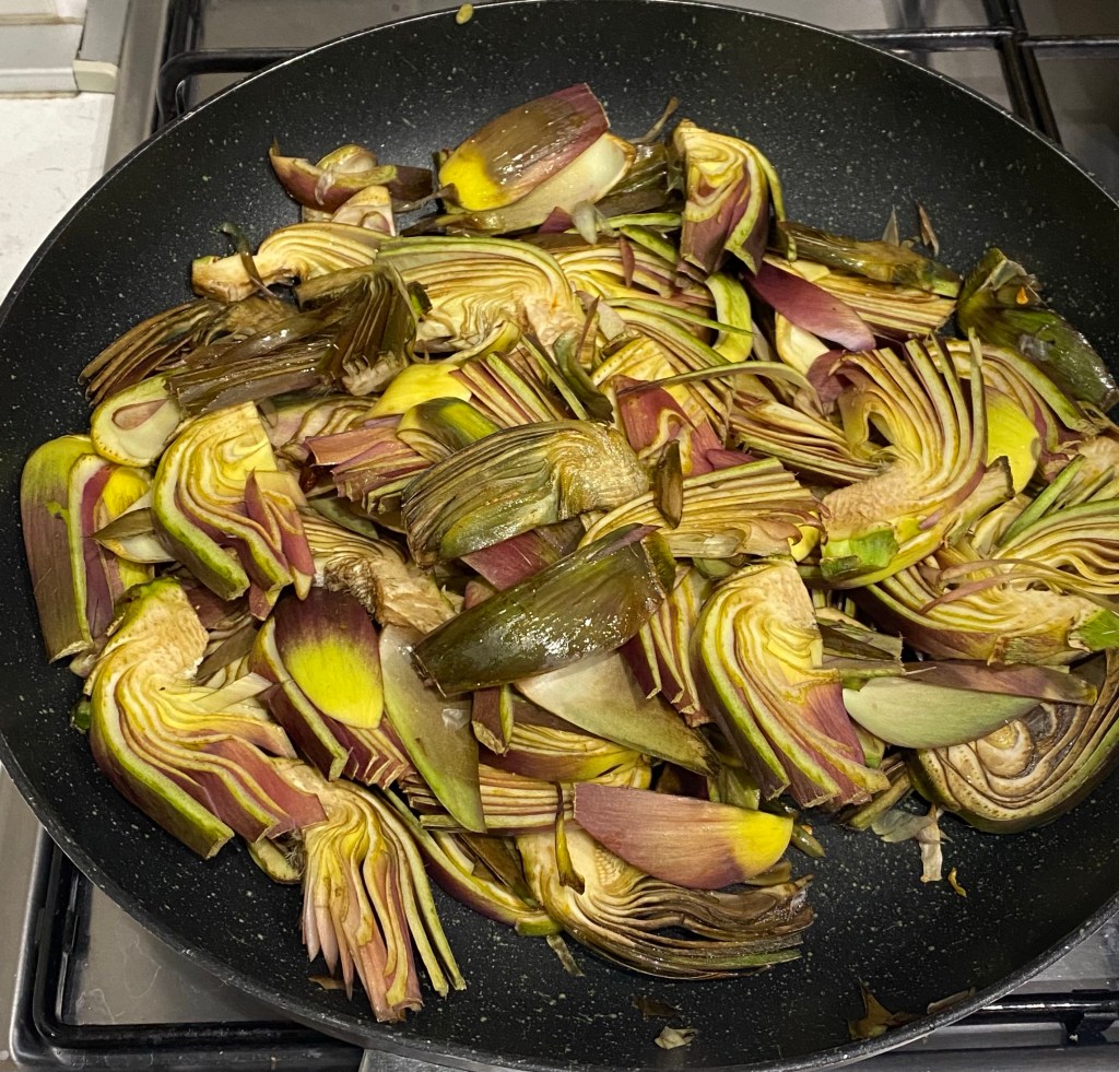 In una decina di minuti dovrebbero essere cotti, tutto dipende dalla qualità dei carciofi. I miei erano un po’ duretti, ho aggiunto altra acqua e fatto cuocere ancora. Oplà, carciofi in padella pronti!