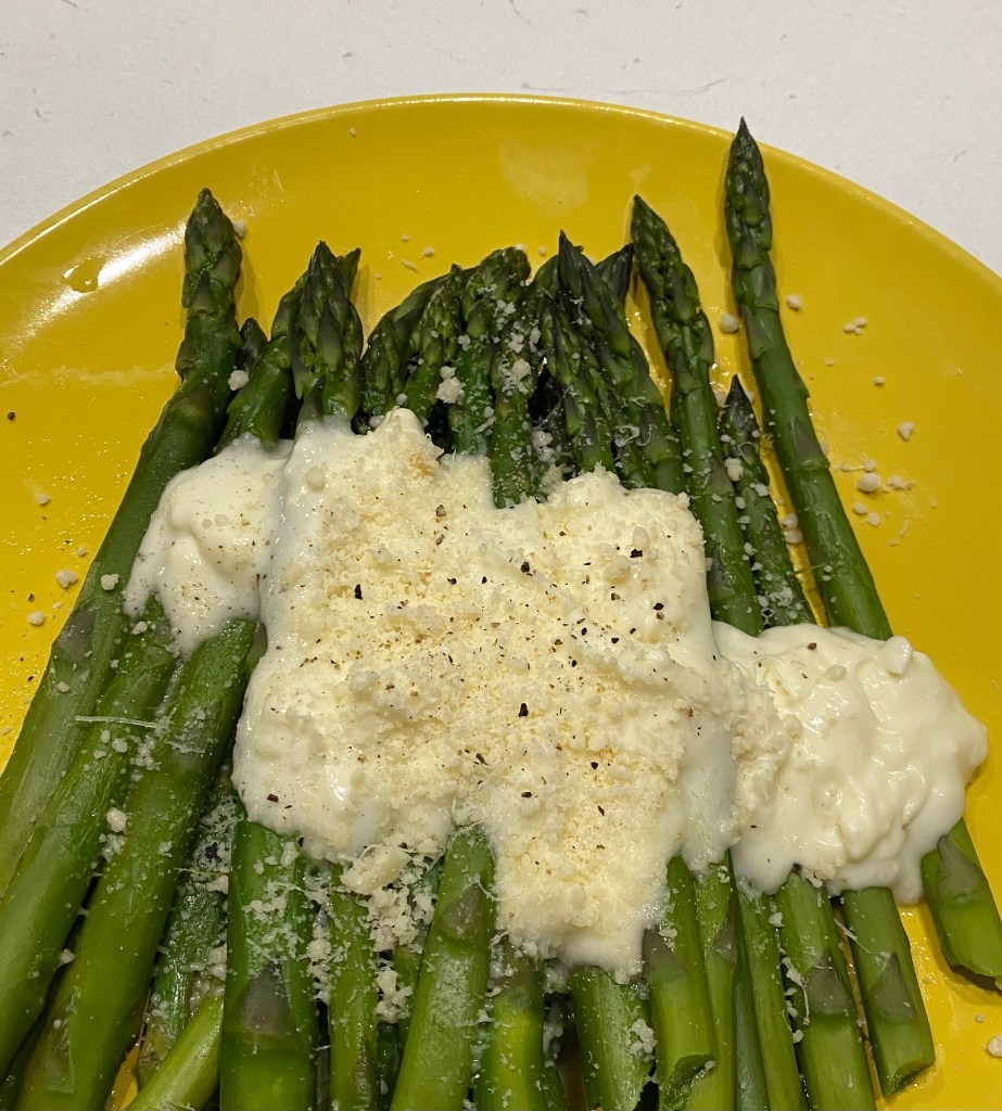 Quanti asparagi avete mangiato finora? Io un botto, in ogni salsa! Ieri sera li ho scottati in acqua bollente per tre minuti per mangiarli con parmigiano e pepe, i miei preferiti. Aprendo il frigor, ho visto una piccola crescenza e ho pensato di lavorarla e stenderla sugli asparagi.