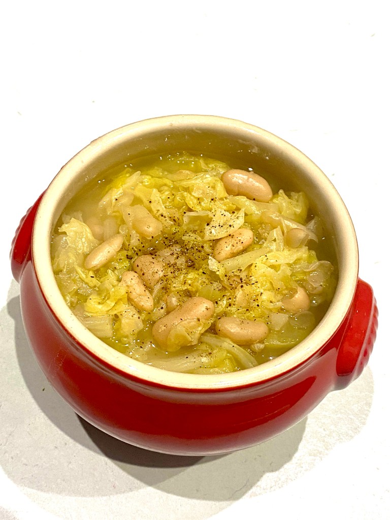 Freddo, ultime verze, ne approfitto per una bella zuppa. Cosa serve? Verza e fagioli cannellini, brodo, pepe e un po’ di parmigiano!